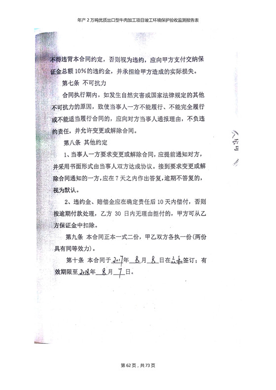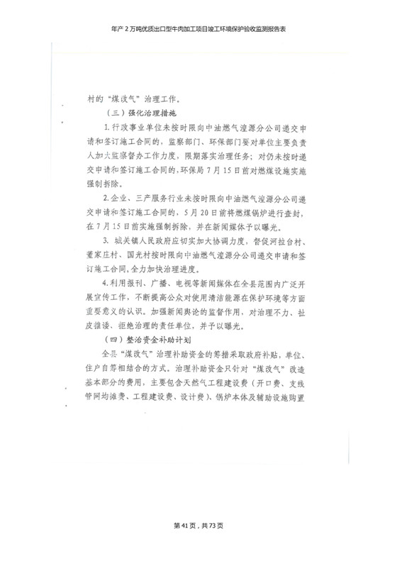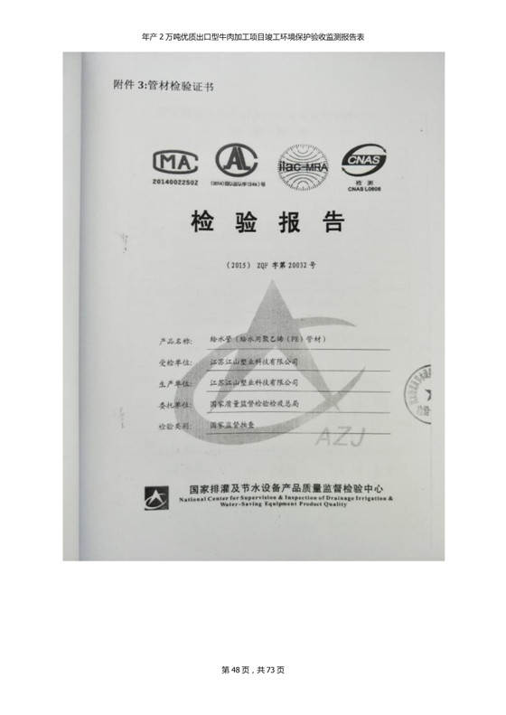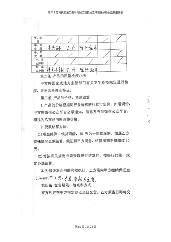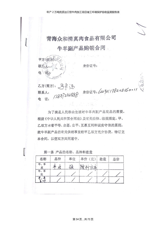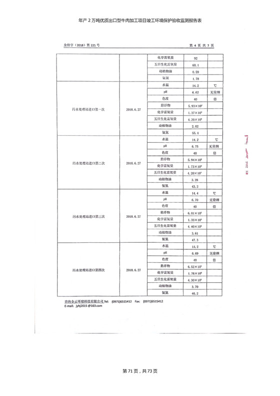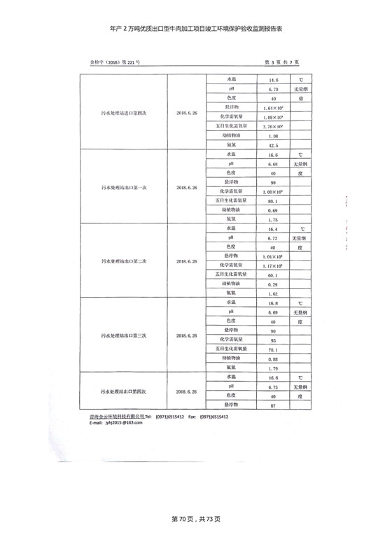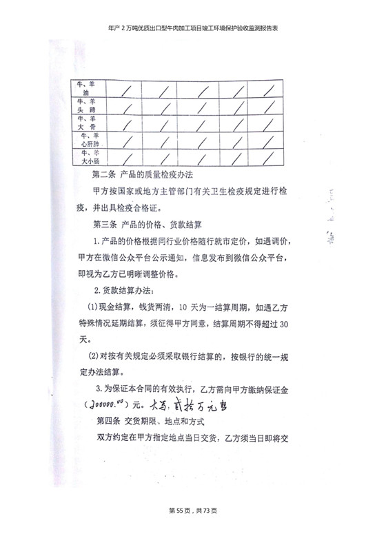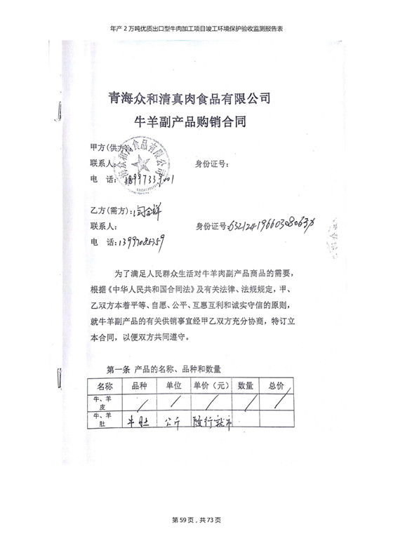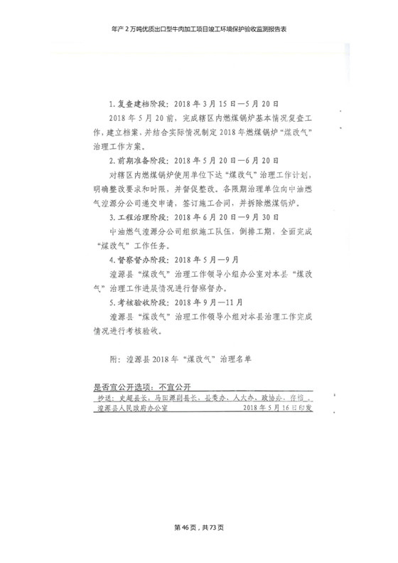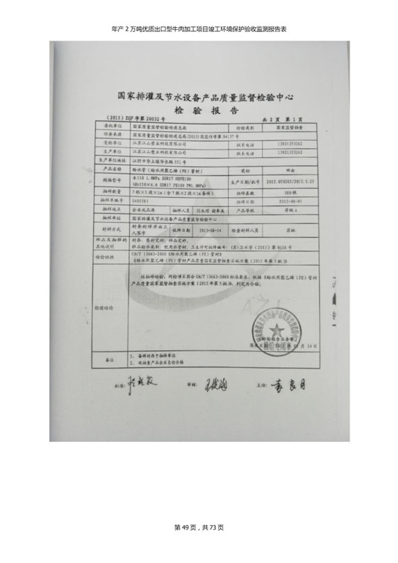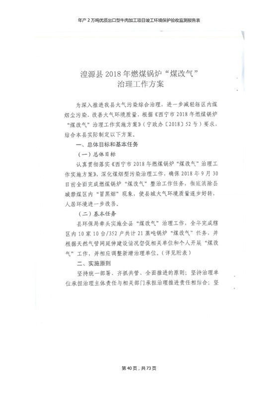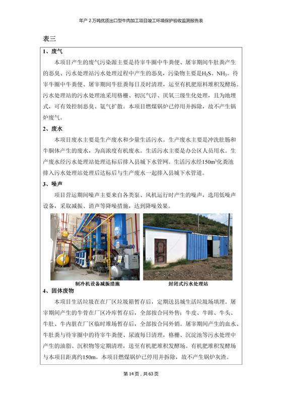 根據(jù)中華人民共和國國務院令第253號《建設(shè)項目環(huán)境保護管理條例》(中華人民共和國國務院令第682號《國務院關(guān)于修改〈建設(shè)項目環(huán)境保護管理條例〉的決定》和《建設(shè)項目竣工環(huán)境保護驗收暫行辦法》,嚴格依照有關(guān)法律法規(guī),建設(shè)項目環(huán)境保護設(shè)施驗收技術(shù)規(guī)范,本項目環(huán)評報告表和環(huán)保審批部門審批意見以及企業(yè)自行驗收相關(guān)要求等對本項目進行驗收,本項目符合環(huán)保驗收條件,可以通過環(huán)保驗收。 青海三江一力農(nóng)業(yè)有限公司組織召開年產(chǎn)2萬噸優(yōu)質(zhì)出口型牛肉加工項目(一期工程)驗收組意見.