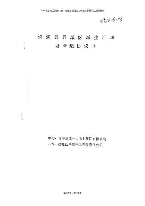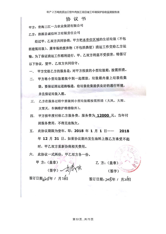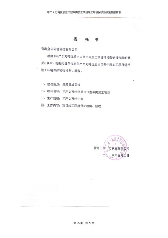 2018年7月11日,青海三江一力農(nóng)業(yè)有限公司組織召開年產(chǎn)2萬噸優(yōu)質(zhì)出口型牛肉加工項目竣工環(huán)境保護驗收會。